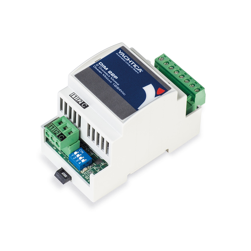 Il DIM 22PN è un modulo con microcontrollore integrato, dotato di 2 uscite di potenza per il controllo ed il dimming di sorgenti luminose a 12/24VDC. Il modulo permette il controllo e la gestione di sorgenti luminose LED monocromatiche pilotate in tensione (con o senza elettronica aggiuntiva) o con segnale PWM (se muniti di apposito driver a 3 fili). Può inoltre gestire linee incandescenti ed alogene, pilotate a 12/24VDC. La corrente massima erogabile da ciascuna uscita è pari a 6A